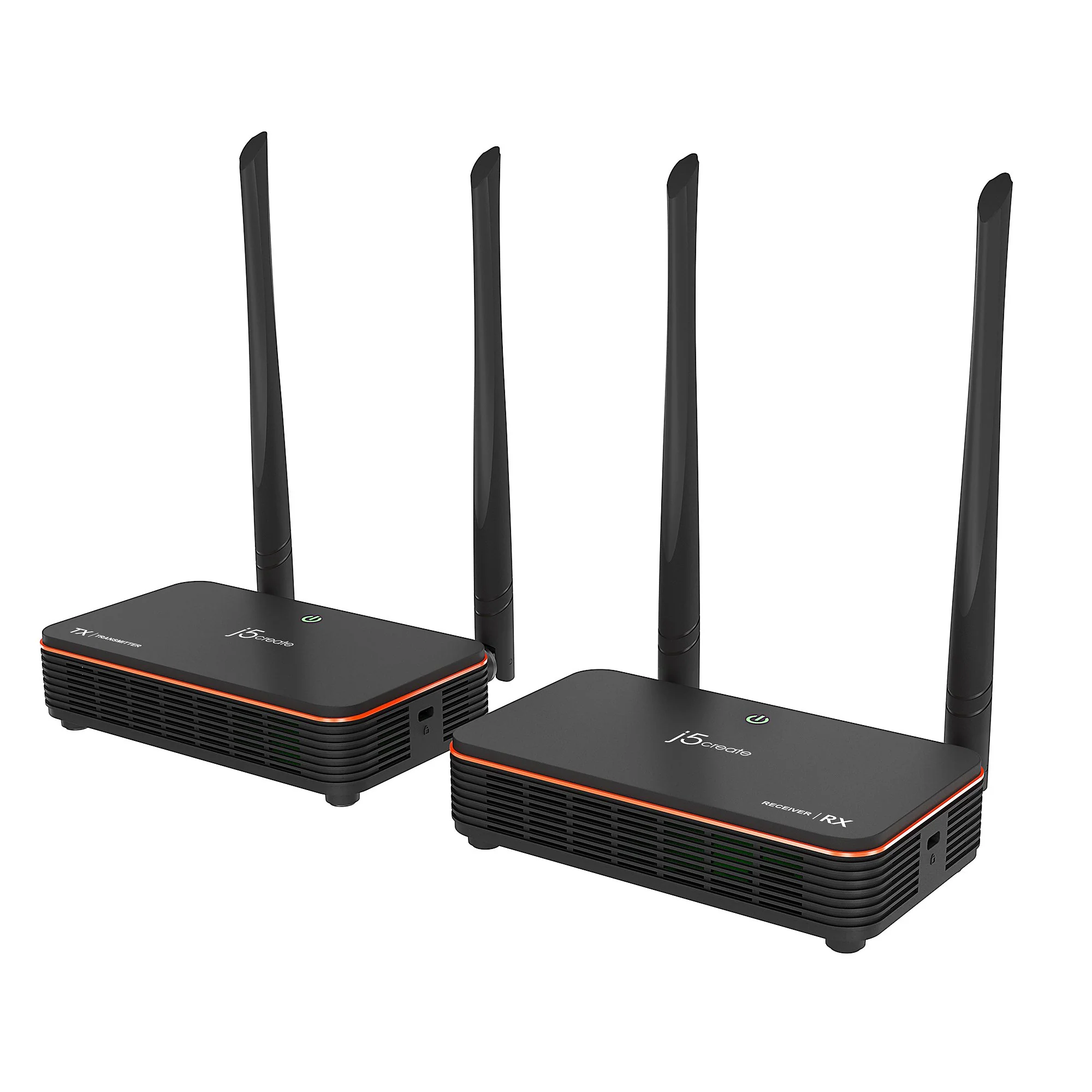 The JVAW50 HDMI™ over Wireless Extender includes a transmitter and receiver kit. It can send a high definition video and audio signal to an HDMI™ enabled TV set, projector or LCD PC monitor display device with receiver distance up to 60 meters and nearly zero latency.